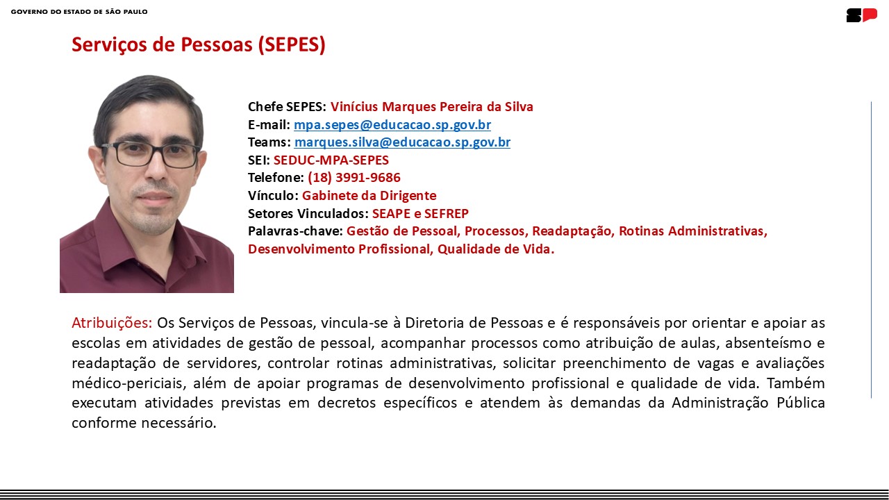 Chefe do Serviços de Pessoas (SEPES): Vinícius Marques Pereira da Silva